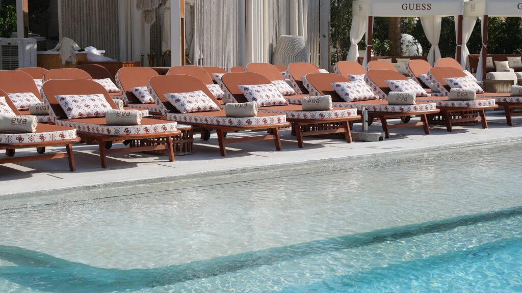Luxury and Tranquility by the Pool Enjoy the luxury and relaxation of Eva Beach’s stylish pool area.